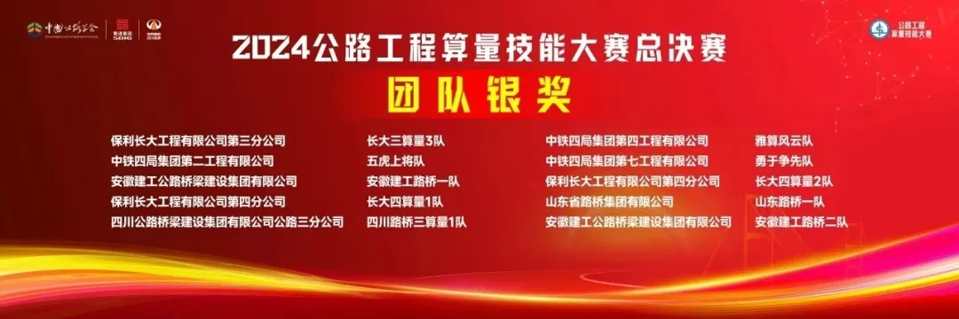 近日,2024年公路工程算量技能大賽全國總決賽圓滿落幕。經過激烈角逐,公司在大賽中榮獲1項團隊賽銀獎、2項團隊優(yōu)秀獎。